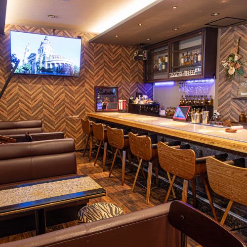 1名掛けのカウンター席は全7席。仕事帰りにふらっと立ち寄って、スタッフとの会話を楽しんだり、ひとりでじっくり歌ったりと、自由なスタイルで過ごせます。常連さんとのちょっとした交流も生まれやすく、初めての方でもすぐに馴染める温もりある空間です。